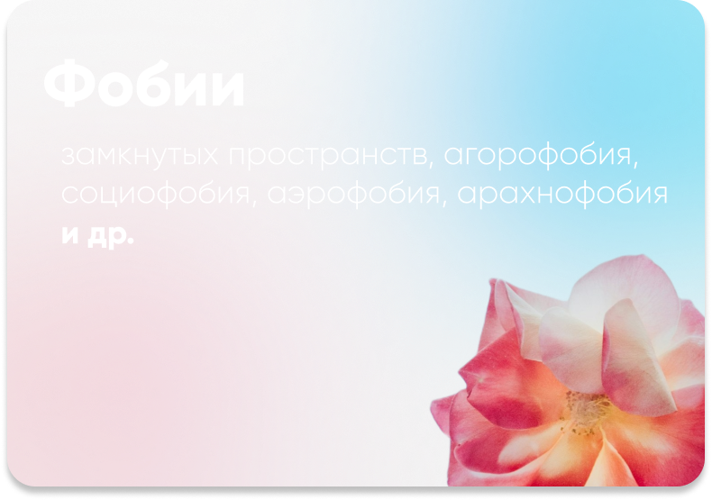 Обсессивно-компульсивное расстройство, пограничное расстройство личности, синдром дефицита внимания и гиперактивности, зависимости, непринятие себя, депрессия, проблемы в отношениях, карьерный тупик и др.